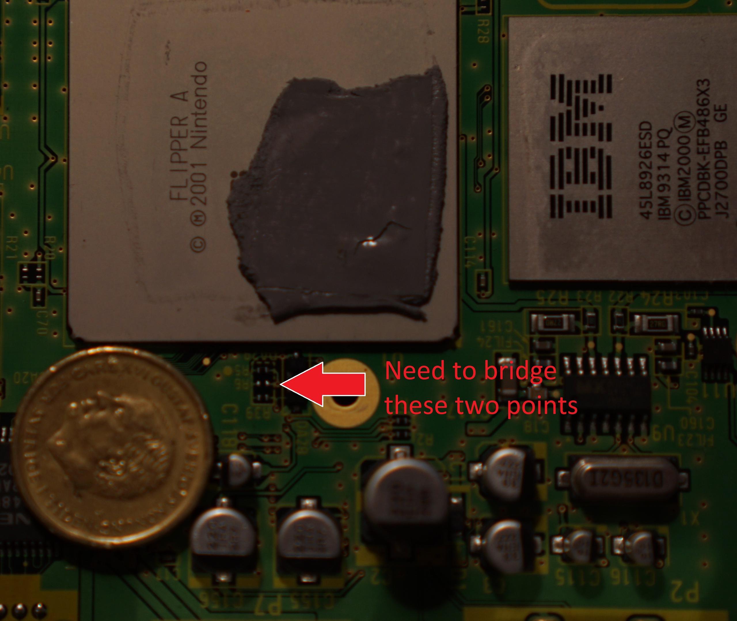 One of the quickest ways of booting a homebrew program is to burn it to a disc and boot directly into it. The GameCube will of course not normally accept such a disc, as it would allow people to burn and play pirated games. In order to disable this anti-piracy measure and make the system accept any disc a mod chip can be installed. So the next order of business is to install a mod chip!