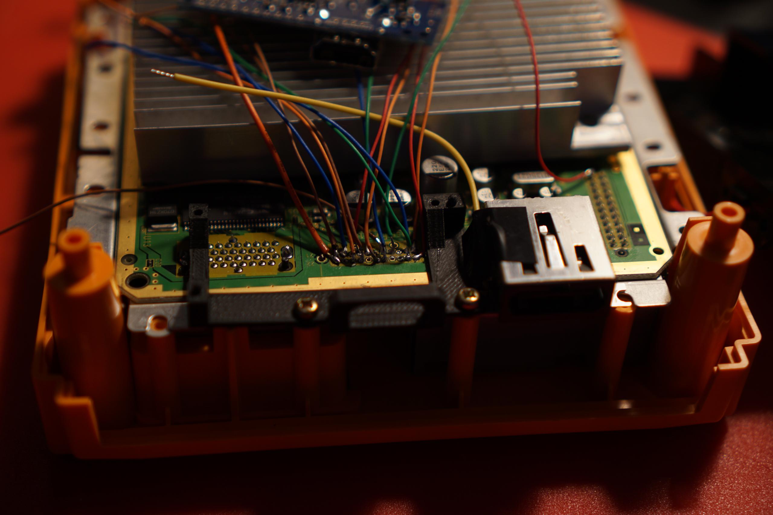 It was also necessary to modify the heatsink in order to fit the FPGA. The final installation is shown in the images above. I have no images to show, but I can confirm that the resulting image quality is way better than with the standard cables. I have not compared with a component cable, but it is at least as good.
